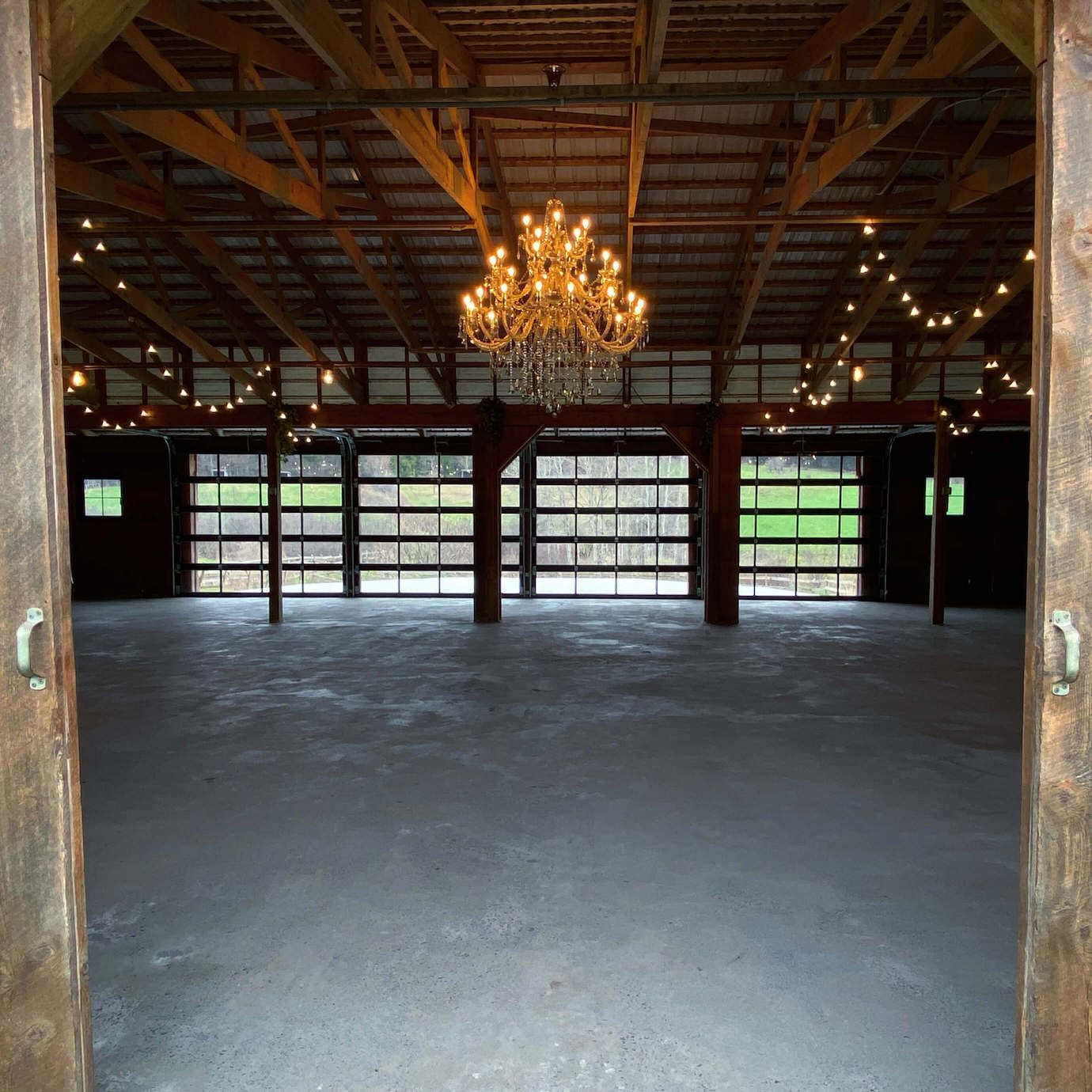 Our main hall is a converted horse stable, elegantly repurposed into a 3,300 sqft industrial reception area. As you make your entrance from the rose garden, you pass under our grand chandelier towards a 40x20 elevated patio that extends out to rolling hills and endless forests. This open concept pulls in the famed beauty of the Catskills into every corner of the barn.
